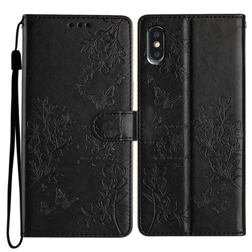 Funda de Cuero para iPhone Xs Max Butterfly Love Flower En Relieve (Negro)