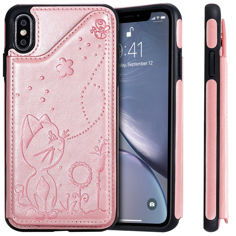 Estuche Protector para iPhone Xs Max Cat Bee Patrón En Relieve a Prueba de Golpes con Ranuras para Tarjetas Marco de Fotos (Oro Rosa)