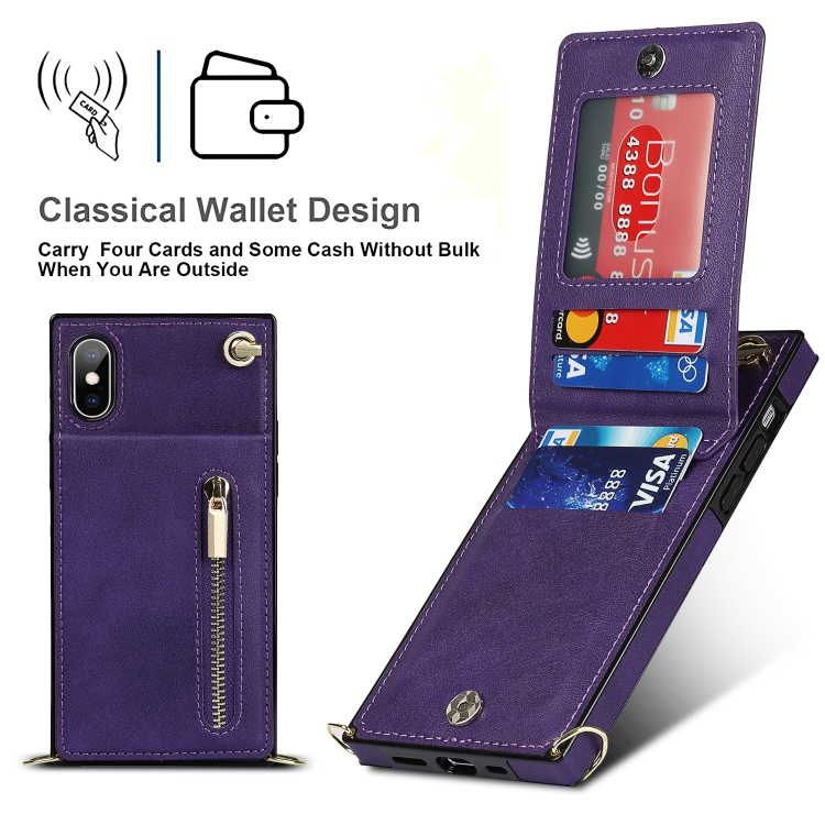 Funda Trasera para iPhone Xs Max Cross-Body Zipper Square TPU y Pu con Soporte y Ranuras para Tarjetas y Billetera y Correa (Púrpura)