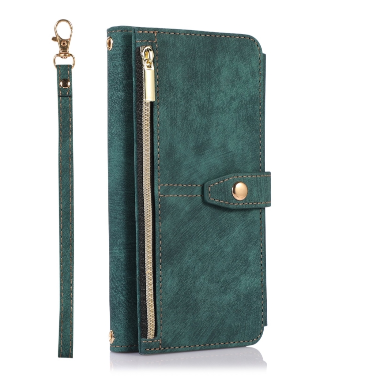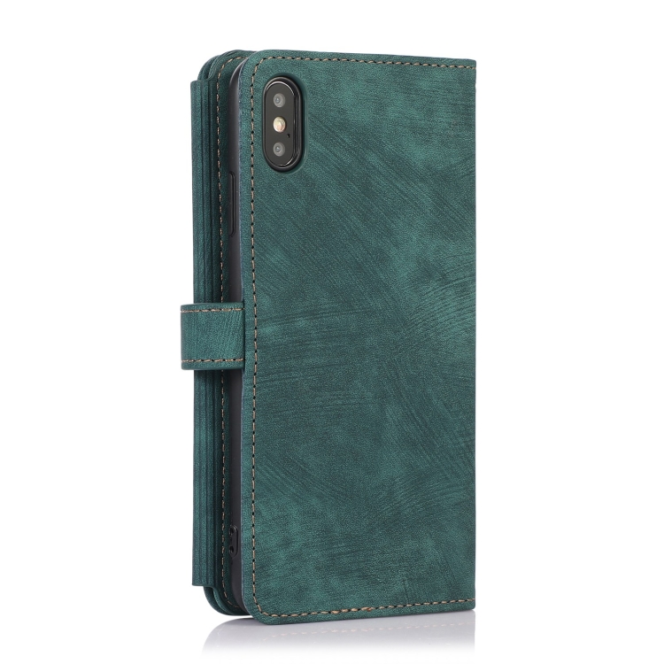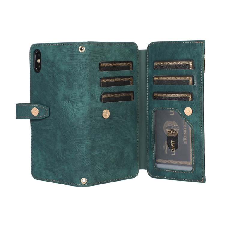 Funda para Teléfono iPhone Xs Max Dream 9-Card Wallet Zipper Bag de Cuero (Verde)