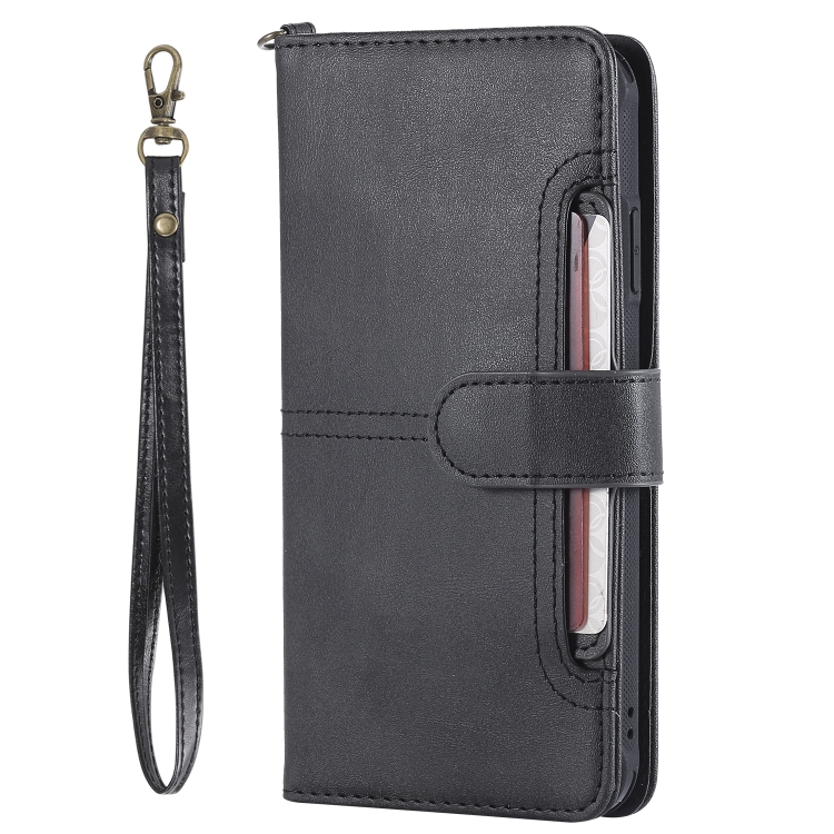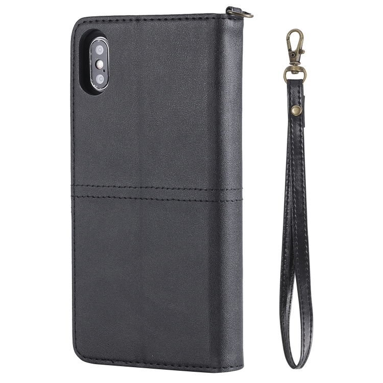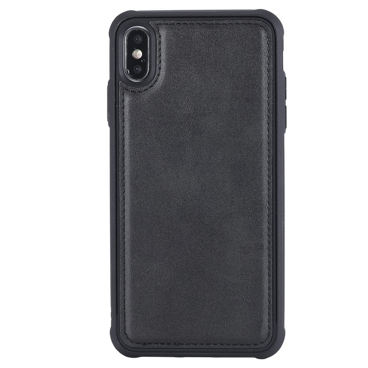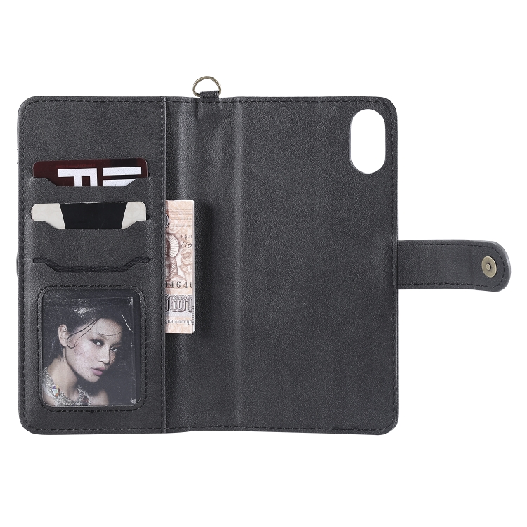 Estuche de Cuero para iPhone Xs Max con Tapa Horizontal Magnética Desmontable Multifuncional Ranuras para Tarjetas Soporte Billetera Marco de Fotos (Negro)