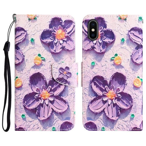 Estuche para Teléfono iPhone Xs Max Cuero Dibujo Coloreado (Flor Morada)