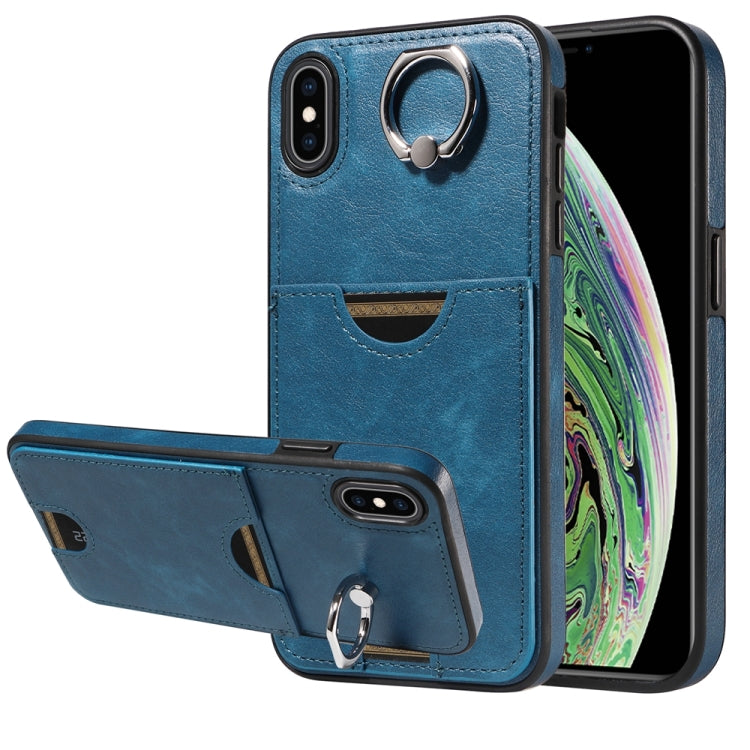 Funda para Teléfono iPhone Xs Max con Soporte para Anillo y Ranura para Tarjeta (Azul)