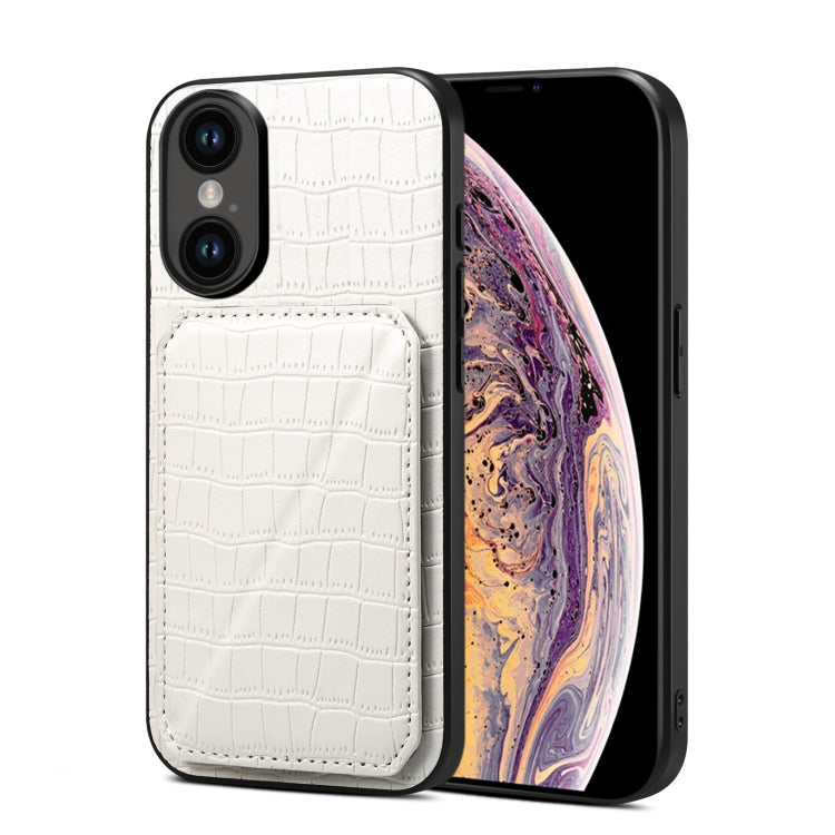 Funda Trasera para iPhone Xs Max de Piel de Cocodrilo de Imitación con Soporte (Blanco)