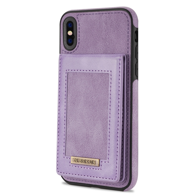 Estuche para Teléfono N.Bekus iPhone Xs Max Ranura para Tarjeta con Tapa Vertical (Púrpura)