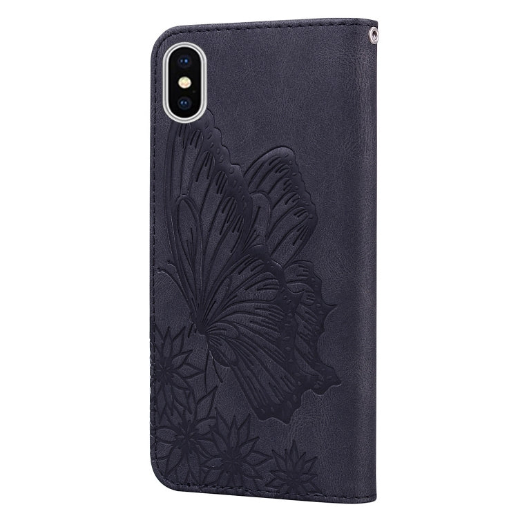 Funda de Cuero para iPhone Xs Max Retro Skin Feel Butterflies con Tapa Horizontal, Soporte y Ranuras para Tarjetas (Negro)