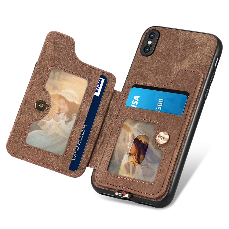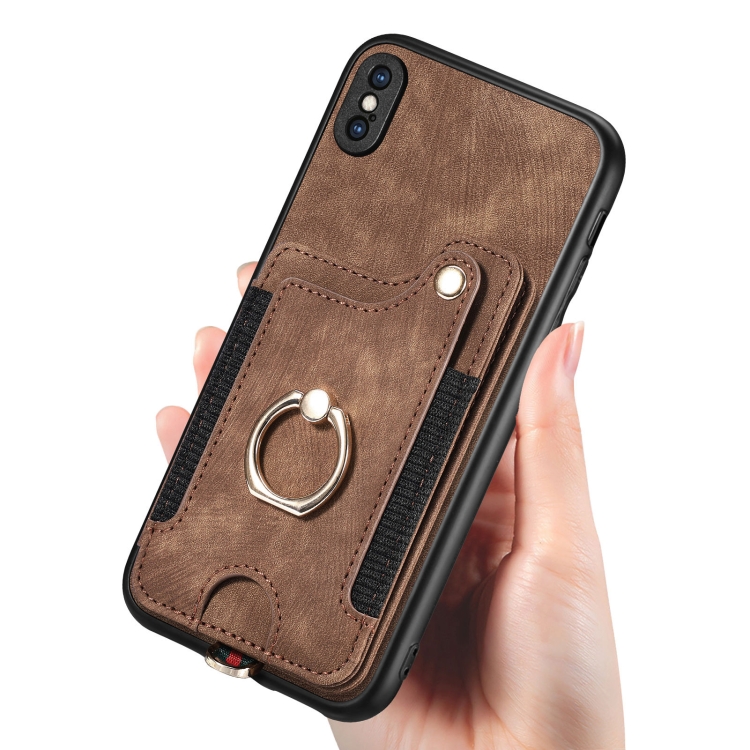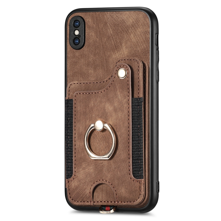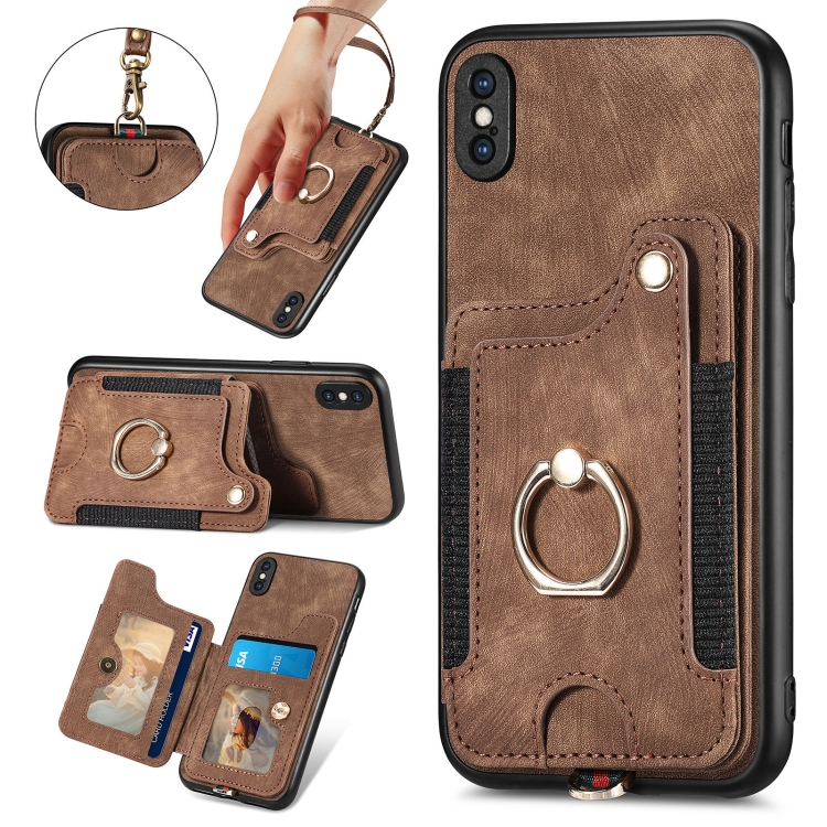 Funda para iPhone Xs Max Retro Skin-Feel Ring Multi-Card Wallet (Marrón)