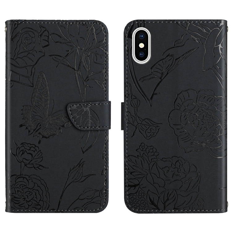 Funda para iPhone Xs Max Skin Feel Butterfly Peony Cuero En Relieve (Negro)