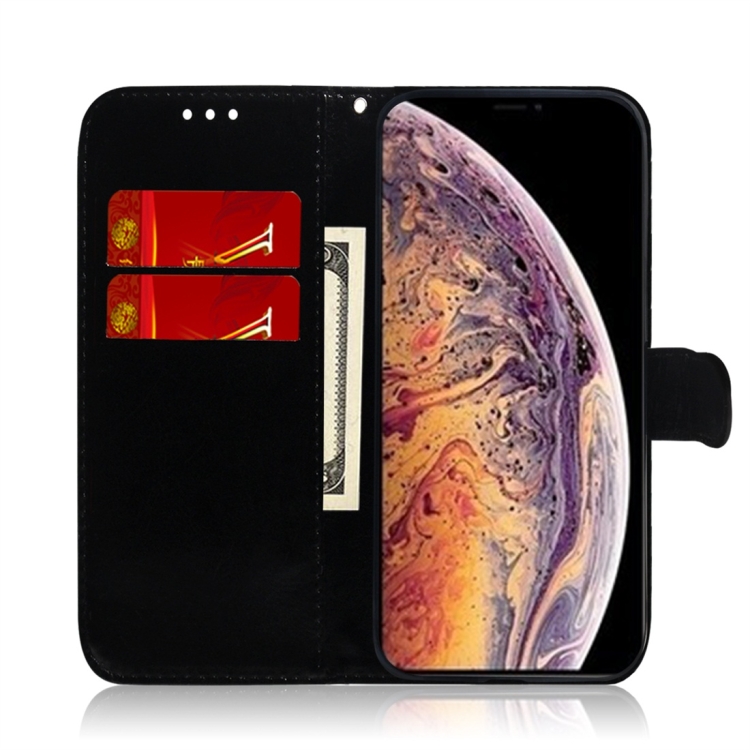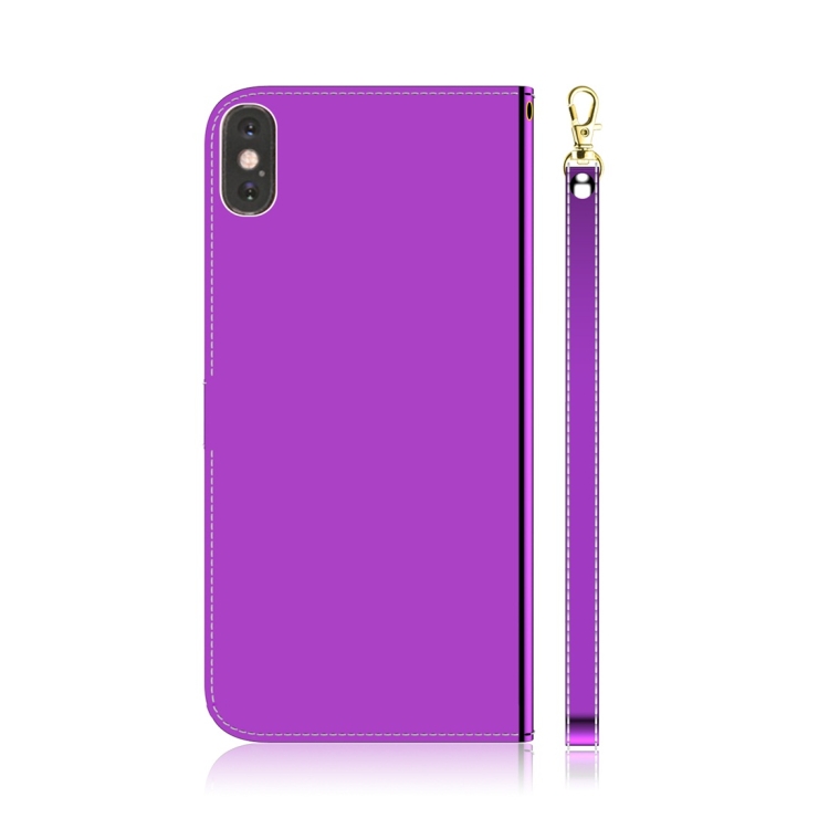 Estuche de Cuero para iPhone Xs Max Superficie Espejo con Tapa Horizontal Soporte Ranuras Tarjetas Billetera Cordón (Púrpura)