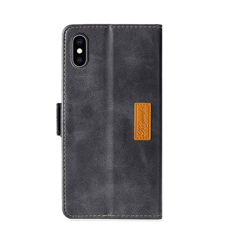 Funda de Cuero para iPhone Xs Max Textura Retro con Hebilla Lateral Tapa Horizontal Soporte Ranuras para Tarjetas Billetera (Negro)