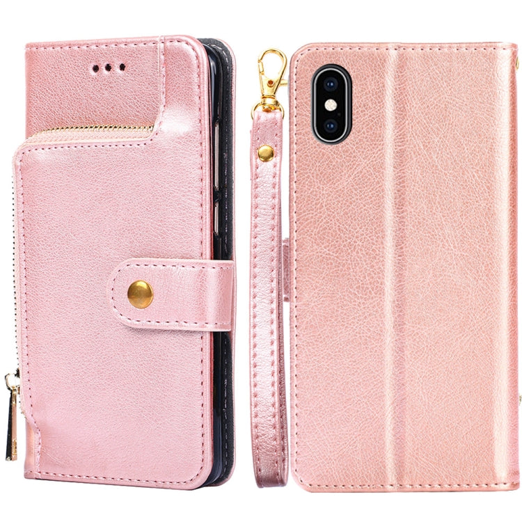 Funda para iPhone Xs Max Zipper Bag PU + TPU Cuero con Tapa Horizontal Soporte Ranura Tarjeta Billetera Cordón (Dorado)