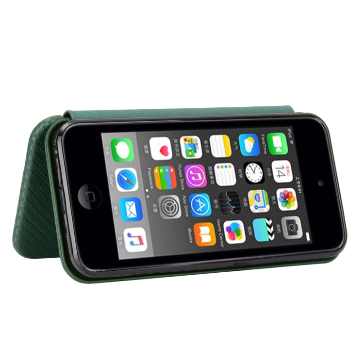 Funda para iPod Touch 5/6/7 Textura Fibra de Carbono Flip Horizontal Magnético TPU PC Cuero Pu Ranura Tarjeta (Verde)