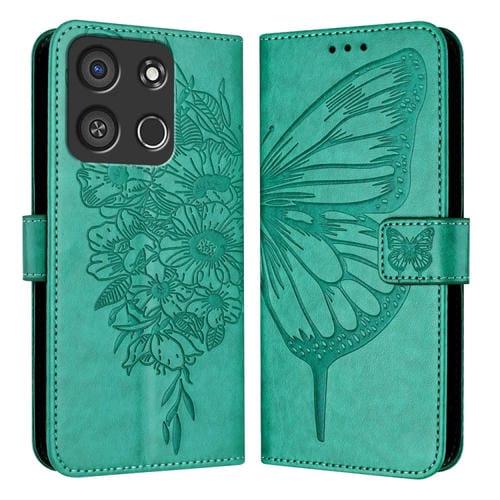 Funda de Cuero para Itel A05S con Mariposa en Relieve (Verde)
