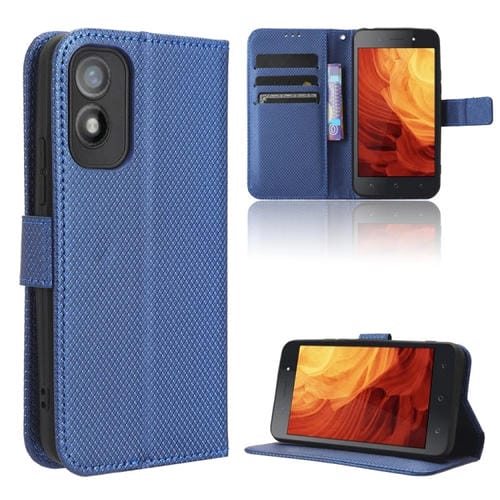 Funda para Itel A18 Caja de Teléfono Cuero Textura de Diamante (Azul)