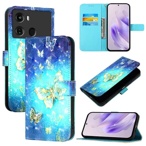 Funda de Cuero para Itel P40 con Tapa Horizontal y Pintura 3D (Mariposa Dorada)