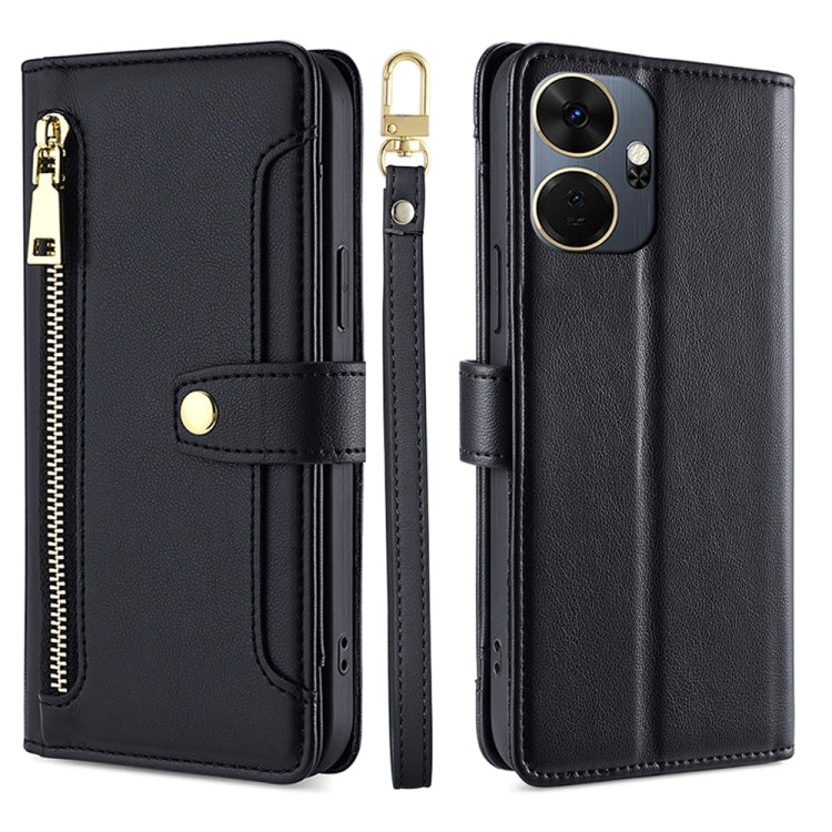 Estuche de Cuero para Itel P55 + 4G con Billetera, Cremallera y Textura de Oveja (Negro)
