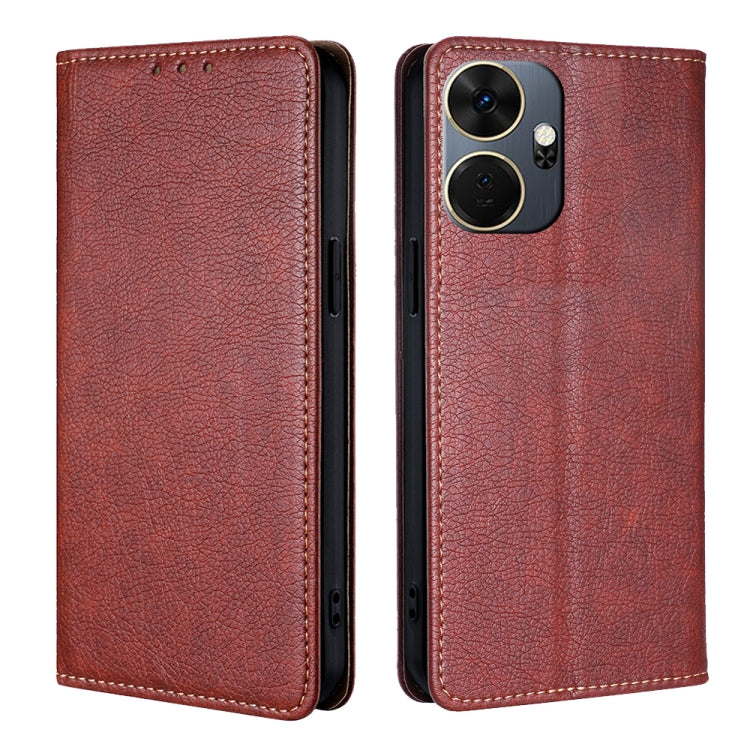 Estuche para Itel P55 + 4G de Cuero Magnético Color Sólido con Aceite Brillante (Marrón)
