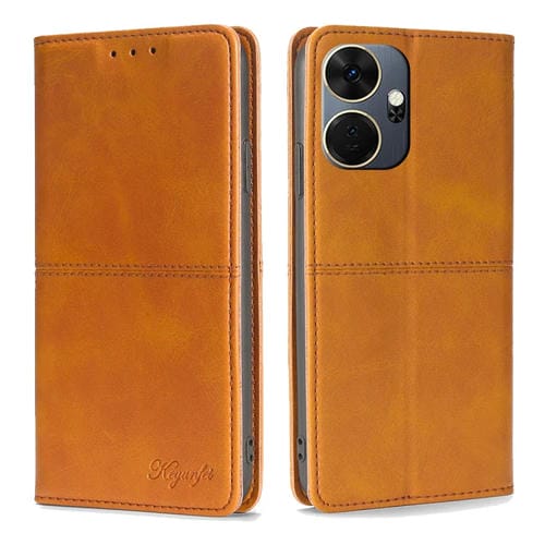 Funda de Teléfono Cuero Magnético para Itel P55 + 4G con Textura de Vaca (Marrón Claro)