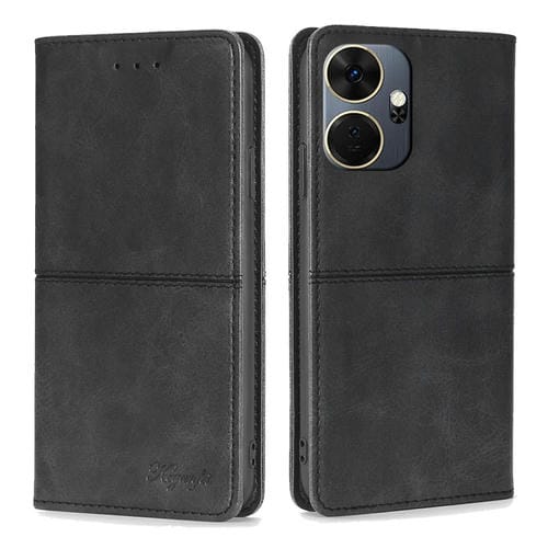 Funda de Cuero Magnética para Itel P55 + 4G con Textura de Vaca (Negro)
