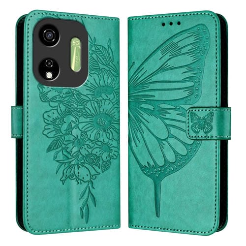 Funda de Cuero para Itel P55 5G con Mariposa en Relieve (Verde)
