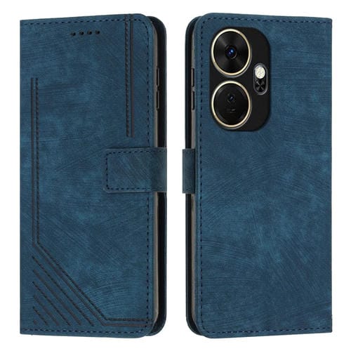 Funda de Cuero para Itel P55 con Patrón de Rayas Skin Feel y Cordón (Azul)