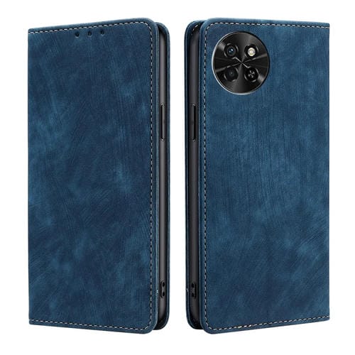 Funda de Cuero Magnética para Itel S23 4G con Rfid y Cepillo Antirrobo (Azul)