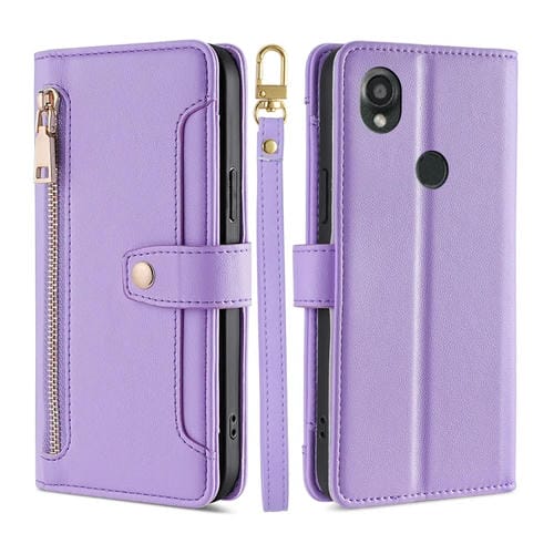 Funda de Cuero Kyocera Digno Sx3-Kyg02 Cross-Body Zipper Wallet Función Teléfono (Púrpura)