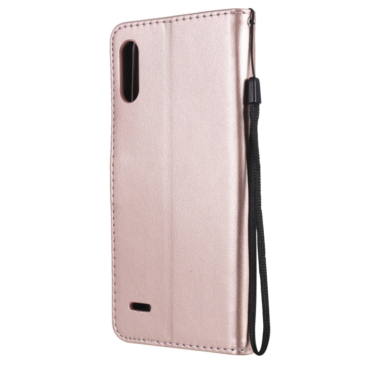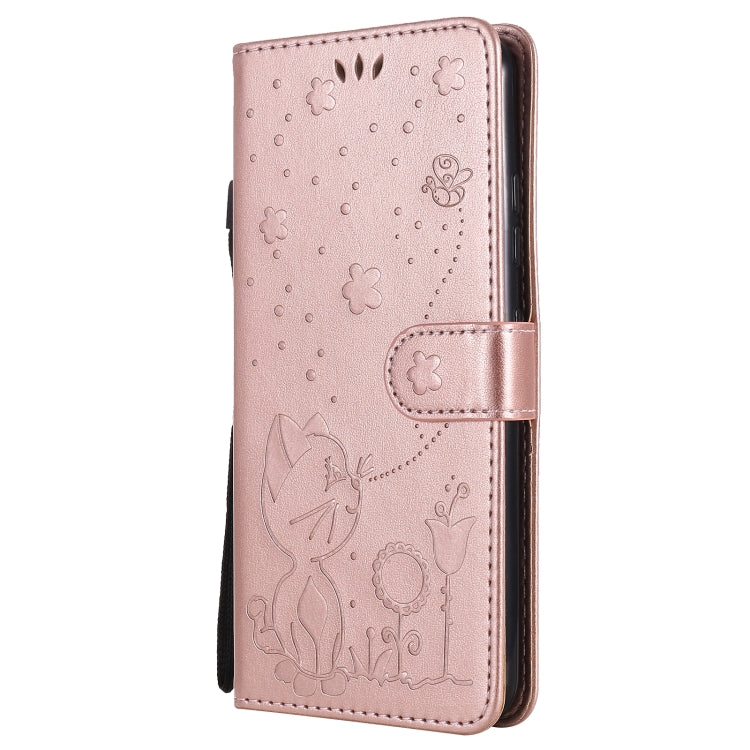 Funda de Cuero para LG K22 y K22 Plus CAT Bee con Tapa Horizontal, Soporte, Ranuras y Billetera (Oro Rosa)