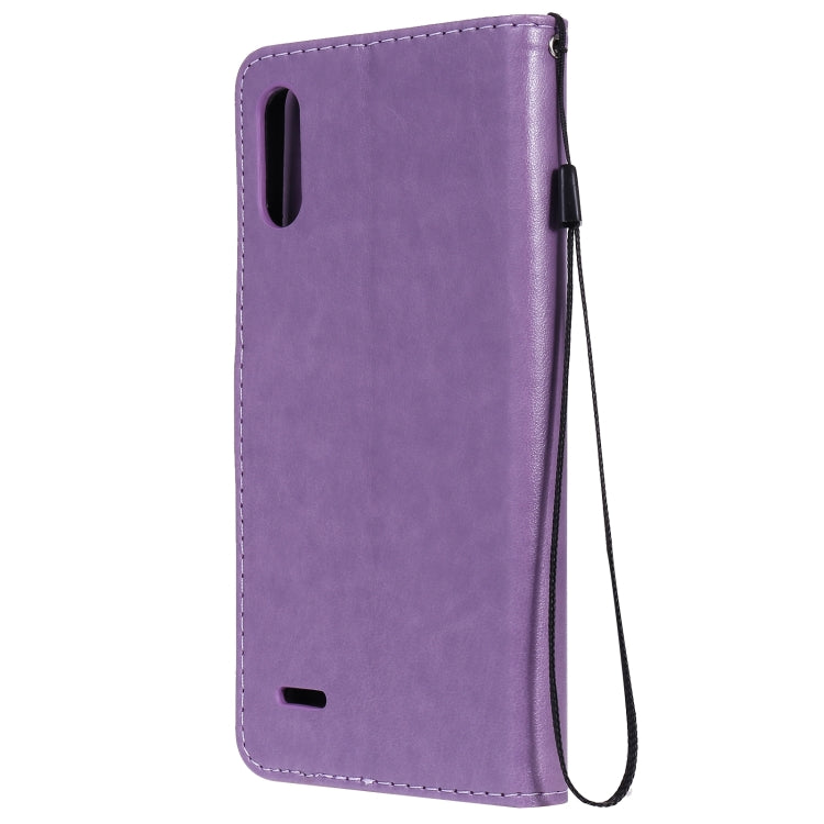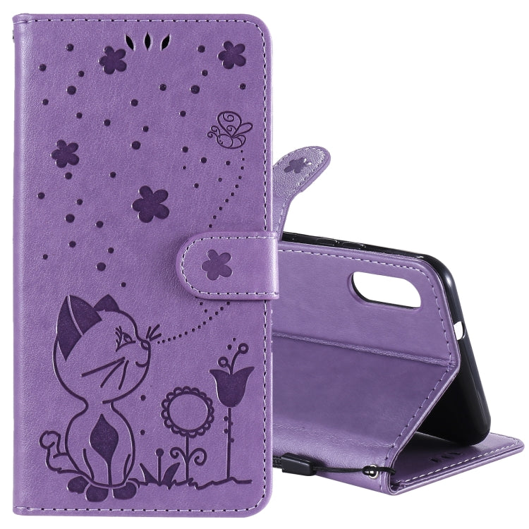Funda de Cuero LG K22 / K22 Plus CAT Bee con Tapa Horizontal, Soporte y Ranuras para Tarjetas (Morado)