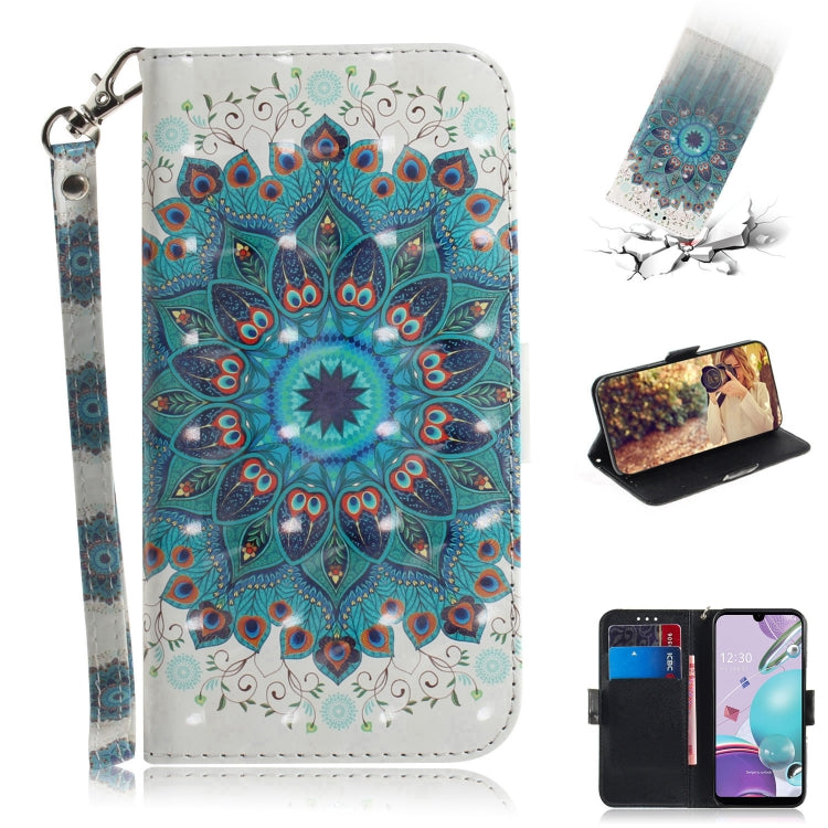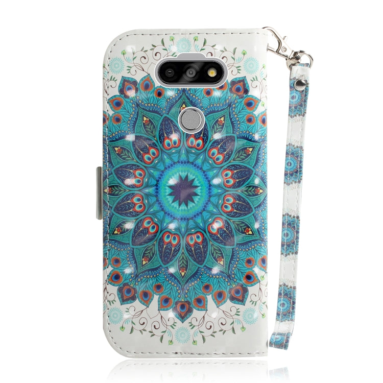 Funda de Cuero Abatible Horizontal para LG K31 con Dibujo 3D, Soporte, Ranuras y Cordón (Corona de Pavo Real)