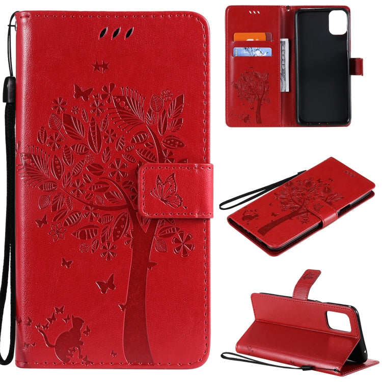 Funda de Cuero PU para LG K42 con Soporte, Ranuras para Tarjetas y Cordón (Rojo)
