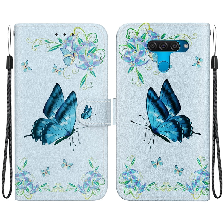 Funda para Teléfono LG K50 Q60 de Cuero con Dibujo Coloreado y Textura de Cristal (Pensamientos Azules)