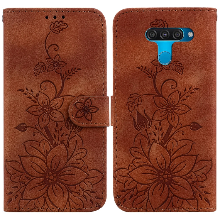 Funda de Cuero en Relieve para LG K50 / Q60 Lily para Teléfono (Marrón)