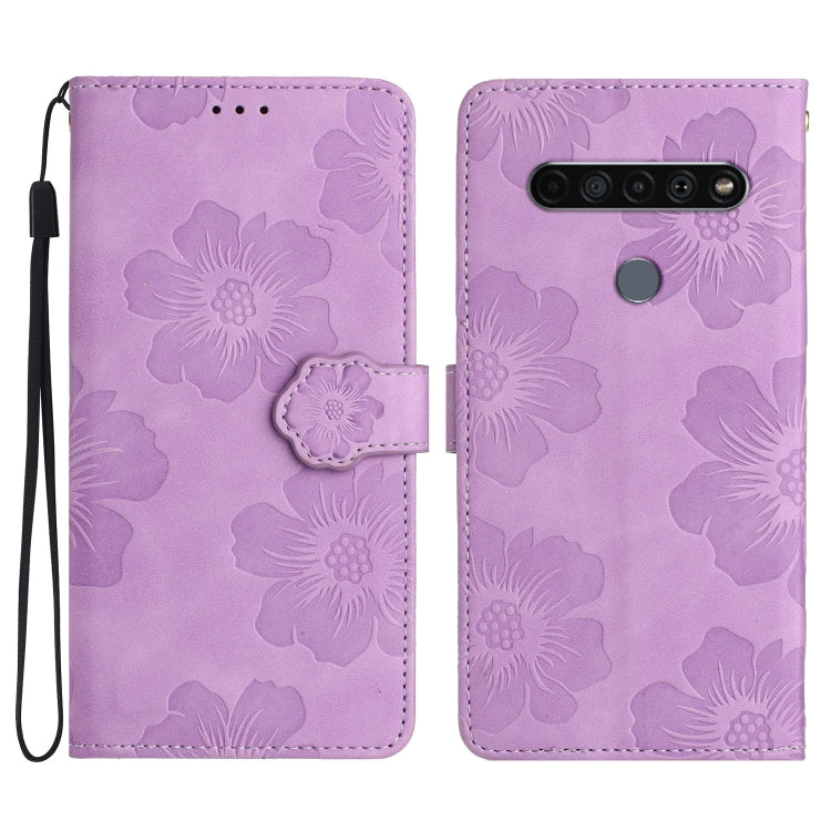 Funda de Cuero para LG K51S con Patrón de Estampado de Flores (Púrpura)