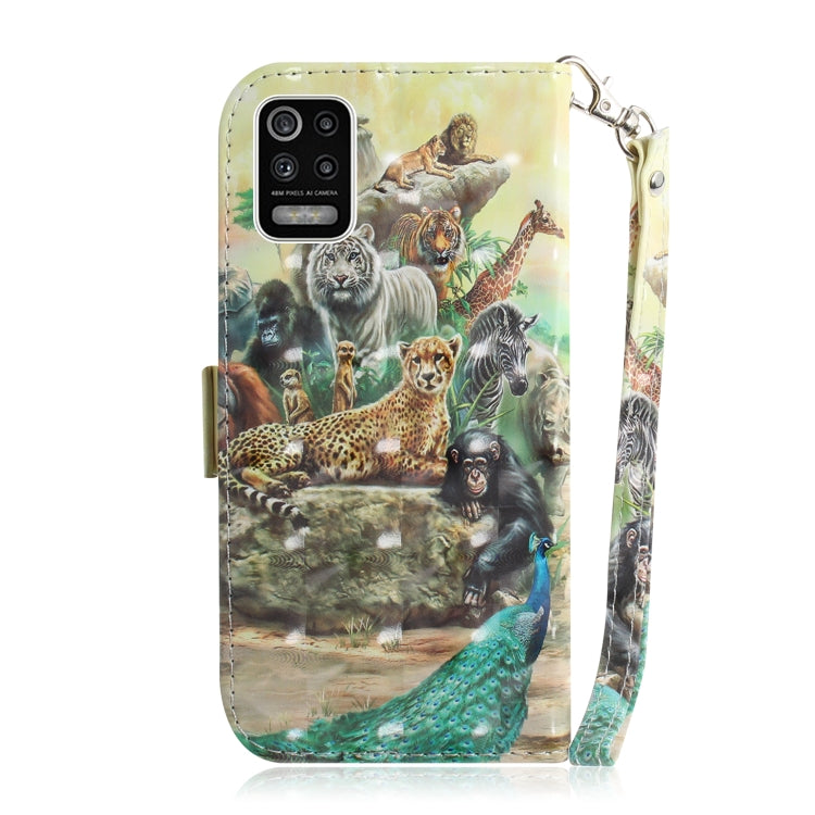 Funda de Cuero Abatible Horizontal para LG K52 con Dibujo 3D, Soporte, Ranuras y Cordón (Zoo)