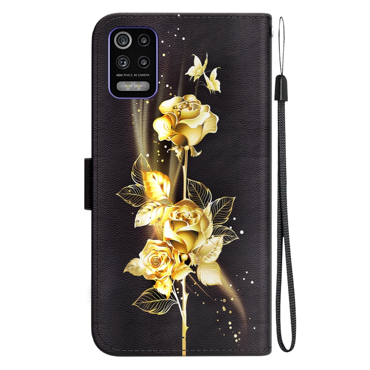 Funda para LG K52 K62 Q52 de Cuero con Dibujo Coloreado y Textura de Cristal (Mariposa Dorada Rosa)
