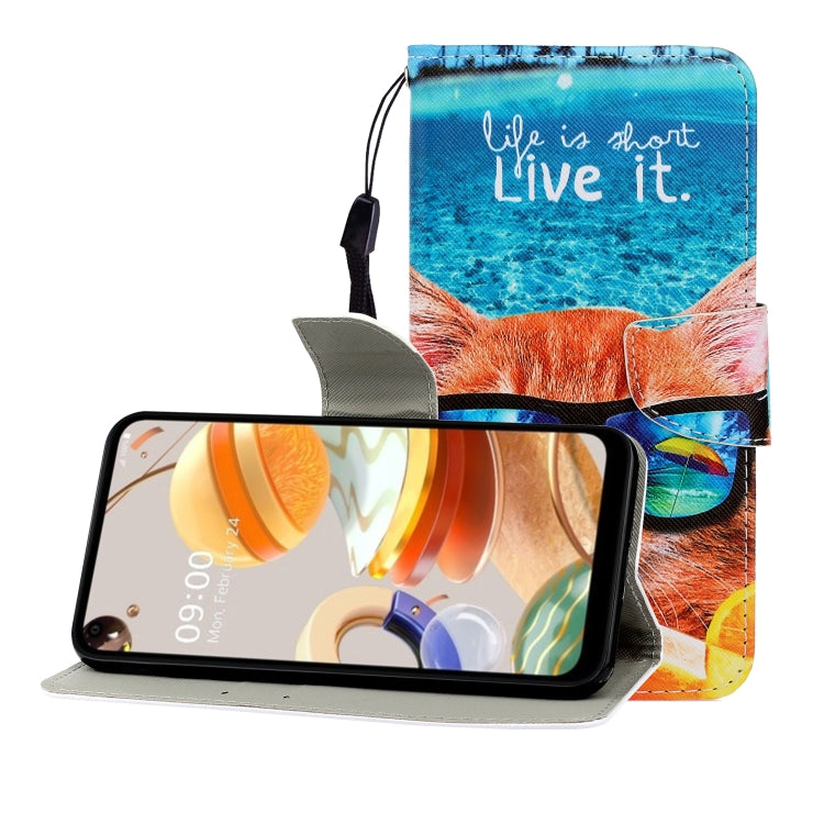 Funda de Cuero Abatible Horizontal para LG K61 con Soporte, Ranura para Tarjeta y Billetera (Gato Submarino)
