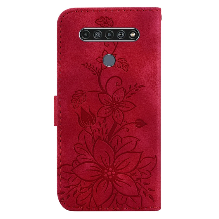 Funda de Cuero para LG K61 con Relieve Lily (Rojo)