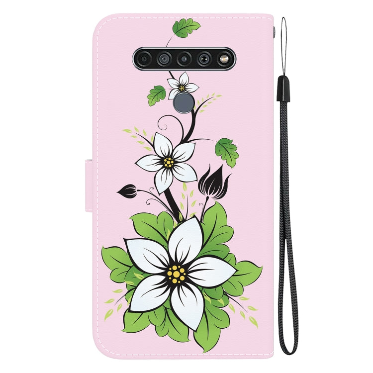 Funda de Cuero para LG K61 con Dibujo Coloreado y Textura de Cristal (Lirio)