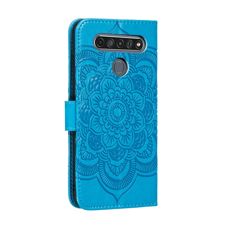Funda de Cuero Pu para LG K61 Mandala con Diseño en Relieve, Tapa Horizontal, Soporte, Ranuras y Cordón (Azul)
