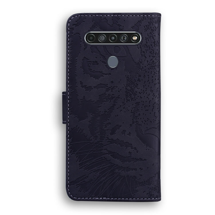 Funda de Cuero LG K61 Tiger Embossing con Tapa Horizontal, Soporte, Ranuras y Billetera (Negro)