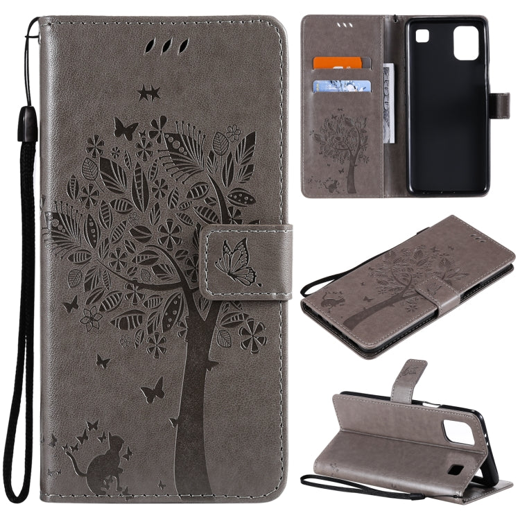 Funda Cuero PU para LG K92 5G con Soporte, Ranuras para Tarjetas y Cordón (Gris)