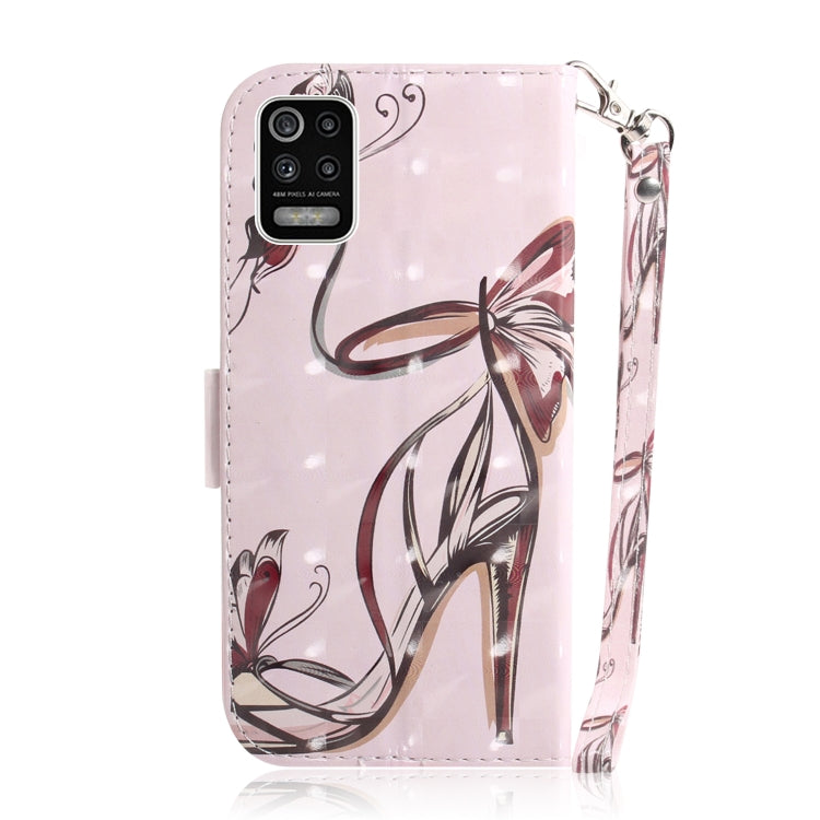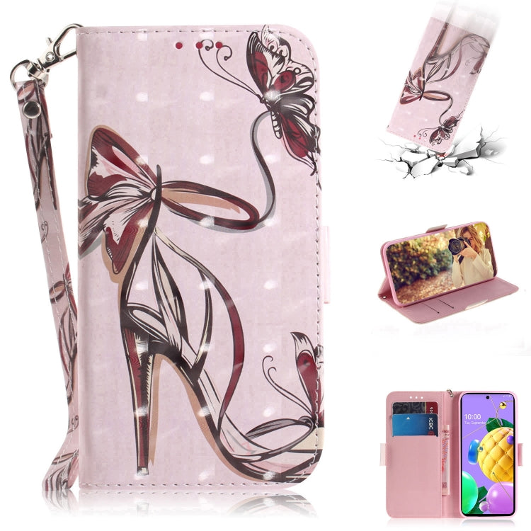 Funda de Cuero para LG Q52 con Tapa Horizontal, Dibujo 3D, Soporte, Ranuras y Cordón (Mariposa)