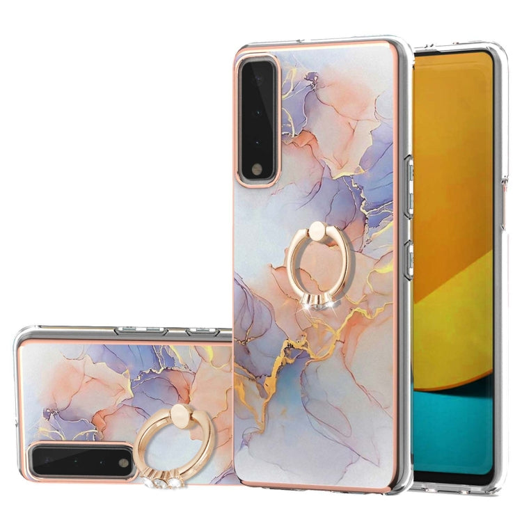 Funda TPU LG Stylo 7 5G Patrón Galvanoplastia a Prueba de Golpes con Soporte Anillo (Mármol Blanco Láctea)