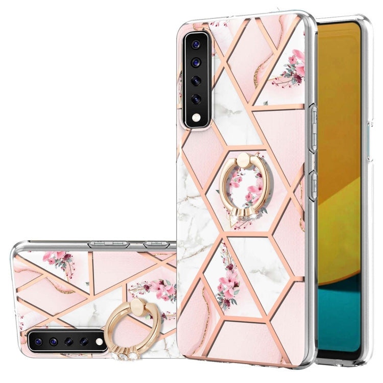 Funda TPU LG Stylo 7 Electrochaplating Patrón Flores Mármol Soporte Anillo Rosa