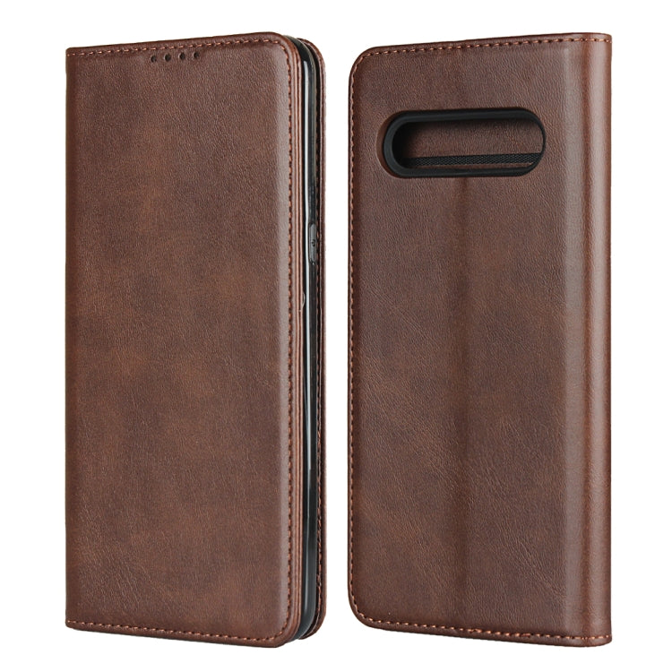 Funda de Cuero Magnética para LG V60 ThinQ 5G con Soporte y Ranuras para Tarjetas (Marrón)