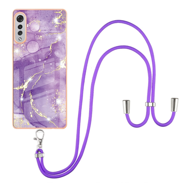 Funda TPU LG Velvet 4G 5G G9 Patrón Mármol Galvanoplata a Prueba de Golpes con Cordillero (Púrpura)