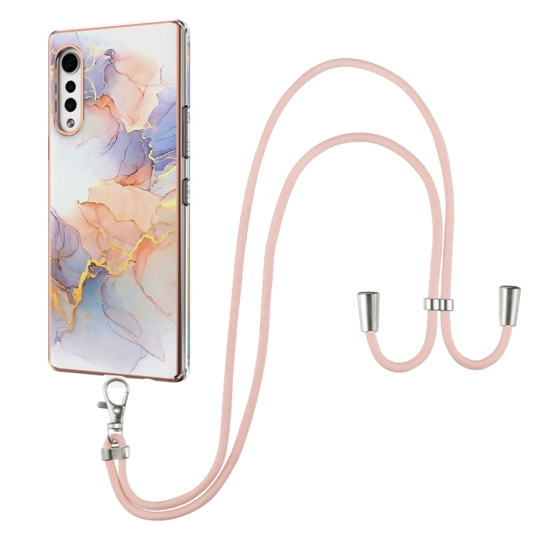 Funda TPU LG Velvet 4G Velvet 5G G9 Patrón Galvanoplastia a Prueba de Golpes con Cordón (Mármol Blanco Lácteo)