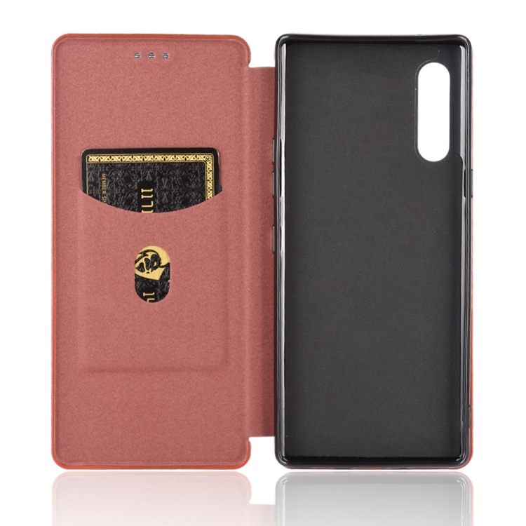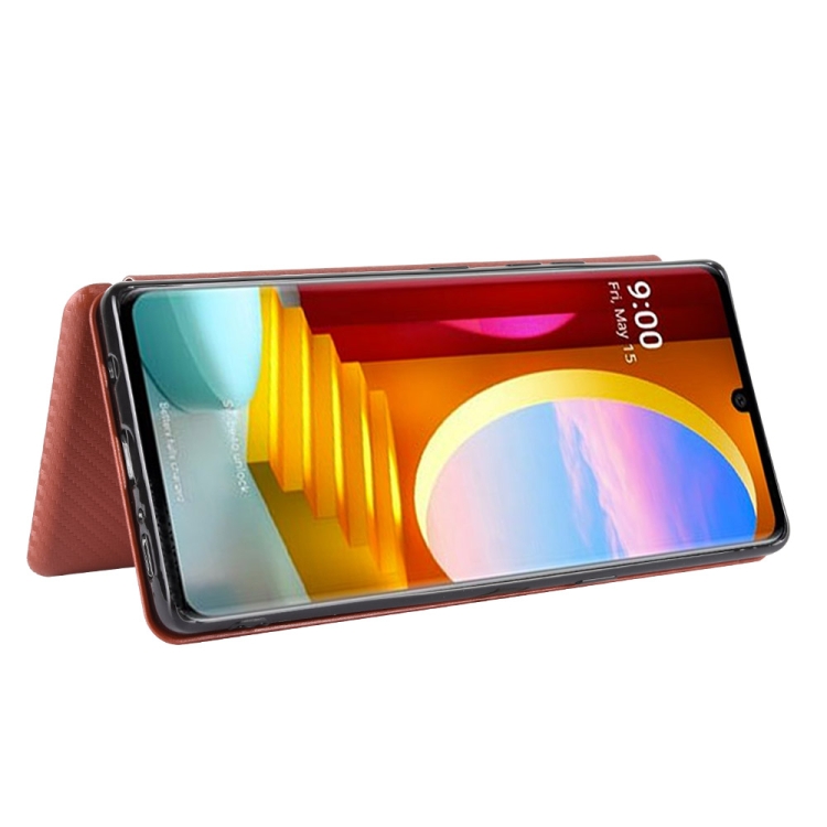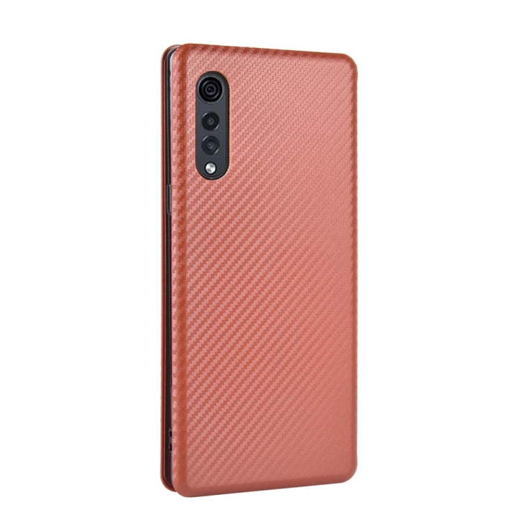 Funda para LG Velvet Carbon Fiber Texture Magnético Flip Horizontal TPU + PC + PU con Ranura para Tarjeta (Marrón)