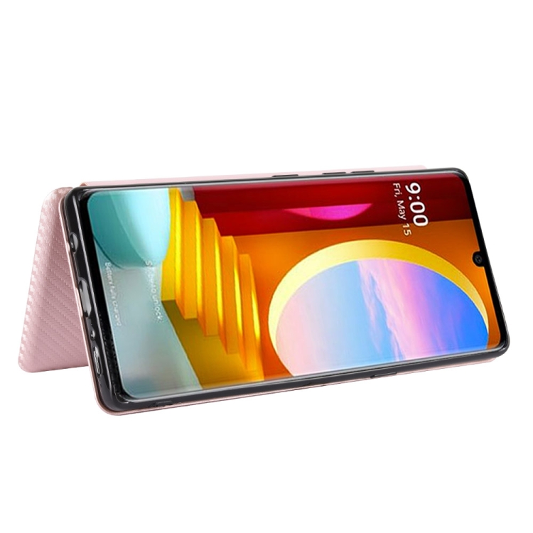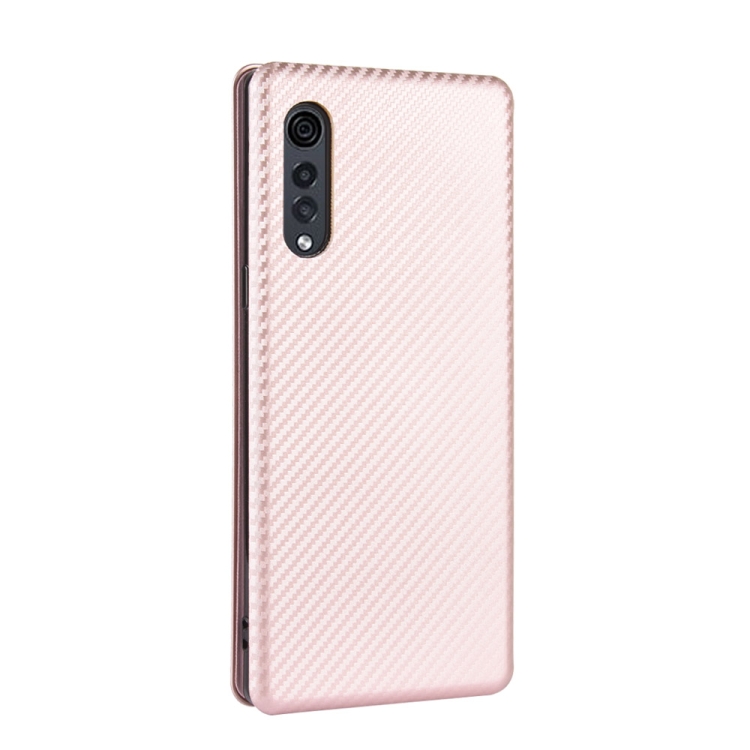 Funda para LG Velvet Carbon Fiber Textura Magnético Flip Horizontal TPU PC PU con Ranura para Tarjeta (Rosa)
